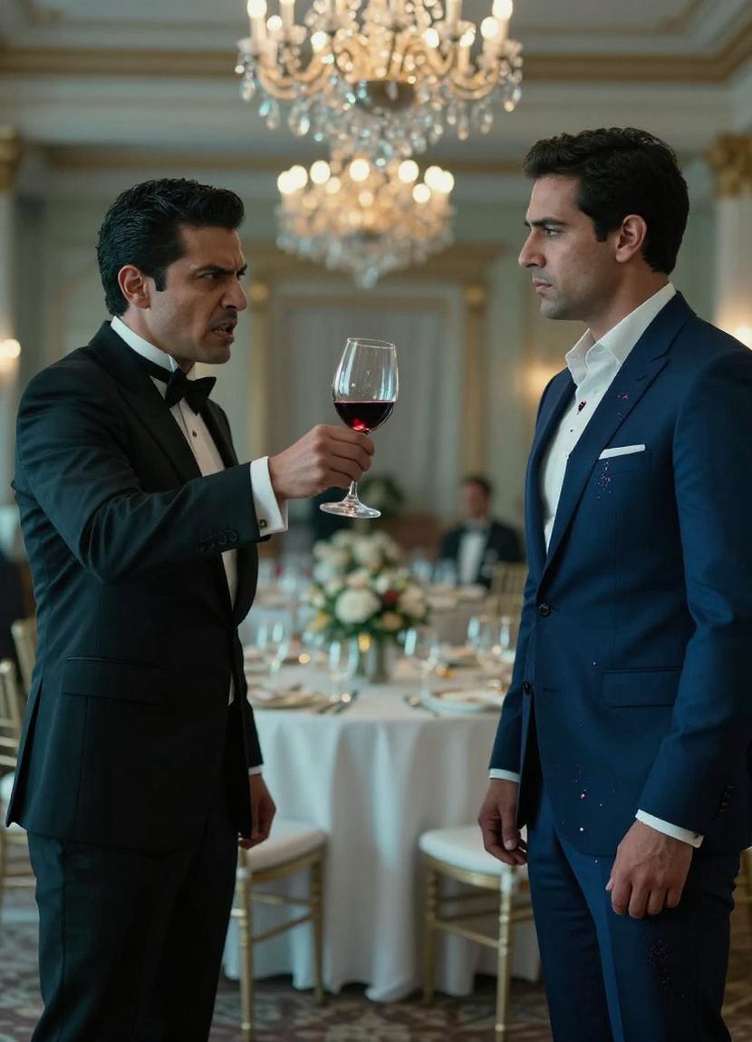 “Allow me,” he snapped, wrenching the glass free. The ballroom held its breath as he raised it high.