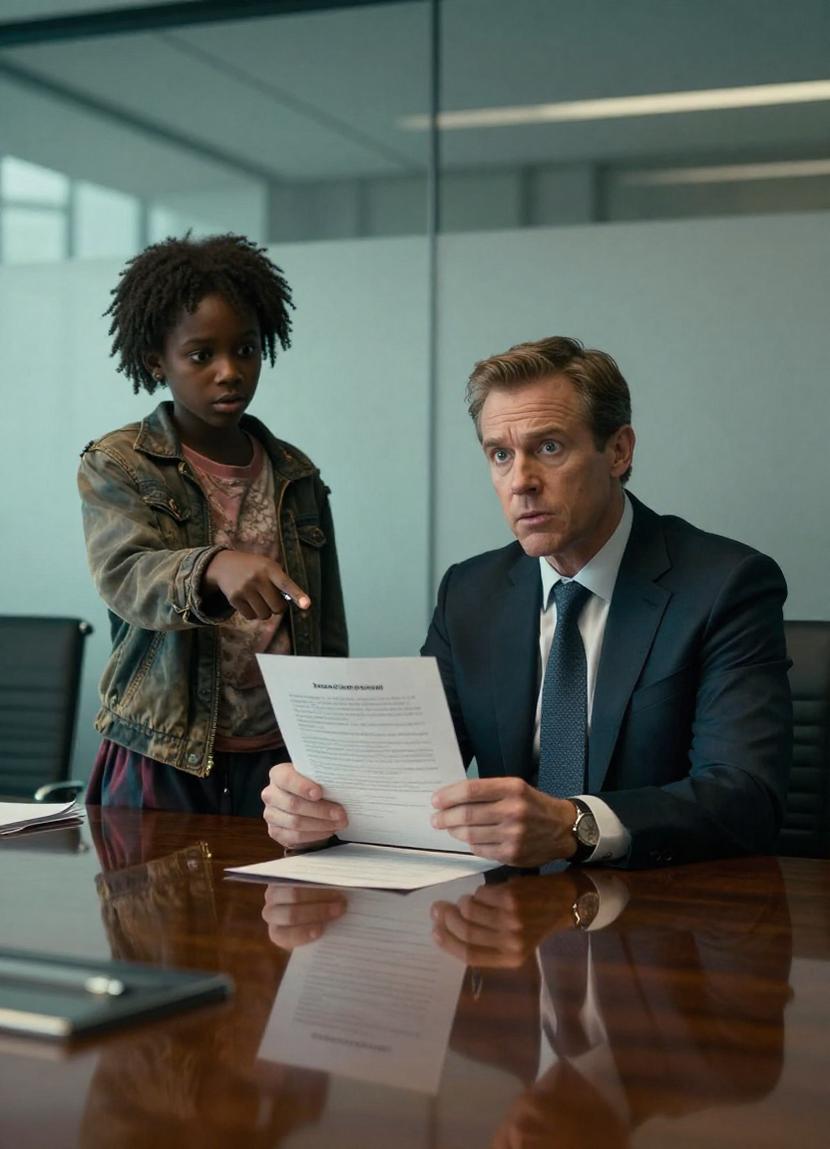 By the glass wall stood a girl no older than twelve, her threadbare jacket inadequate against the storm raging outside and her worn shoes barely holding together. She had been allowed in only because the downpour had rendered the lobby unpassable—and because she’d quietly helped others hold doors open, unnoticed and unassuming.
