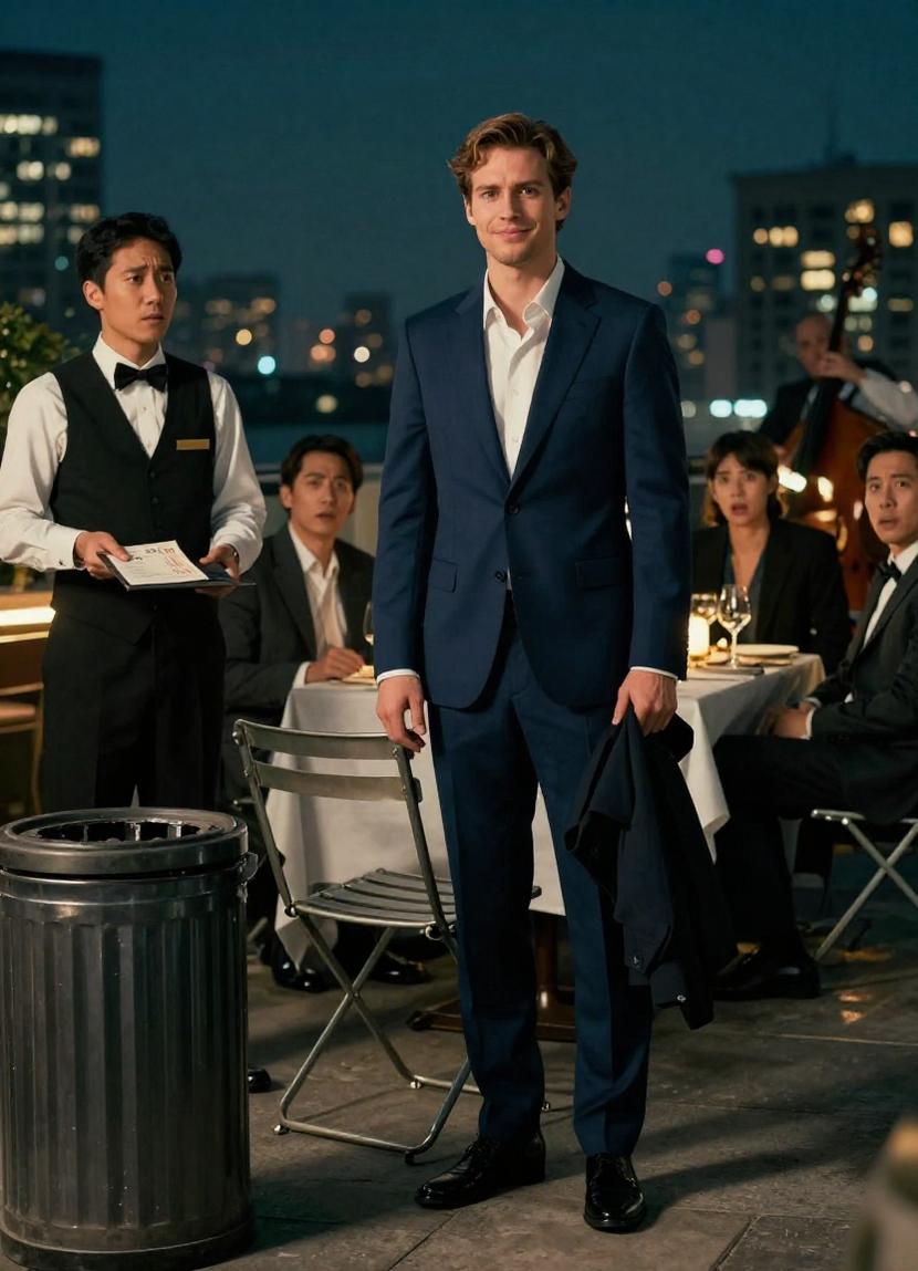 The night arrived. At 7:00 PM sharp, I stepped onto the rooftop, crisp navy suit, freshly ironed shirt, new cufflinks glinting in the soft light. I carried a nice bottle of champagne and a custom card embossed with their initials. The hostess showed me to the private area, awash in warm string lights and fragrant floral centerpieces, the air humming with soft jazz.