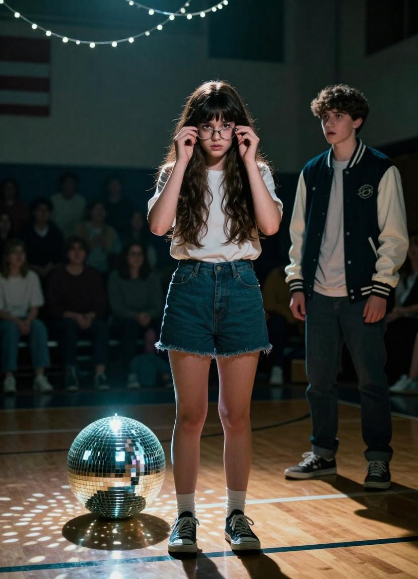 The gym had been transformed, stretched beyond its modest walls by strings of white lights that dripped from the rafters like ethereal rain. A rented disco ball spun slowly overhead, scattering diamonds of refracted light onto the polished floor, which mirrored a sea of faces—all except one desperately trying to blend into the shadows. Mara stood near the punch table, her fingers clasped tightly around a plastic cup she barely touched. Her navy blue dress was deliberately unremarkable, chosen to disappear rather than be seen. Behind her glasses, worn like a protective shield, and beneath the sleek wig pinned in place, Mara crafted a fortress born from years of quiet survival—not because she lacked allure, but because invisibility was her refuge.